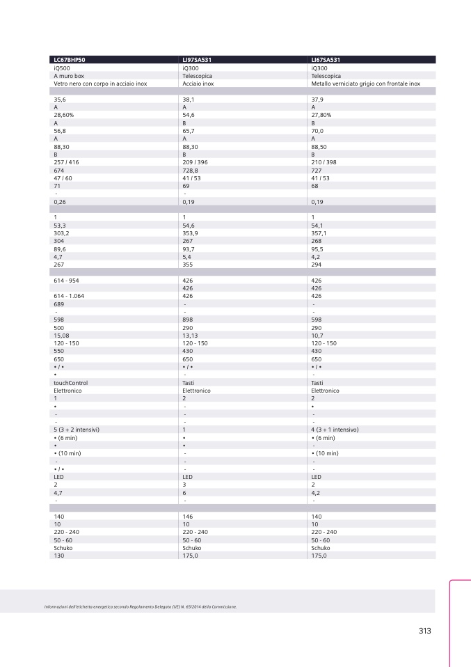 Informazioni dell’etichetta energetica secondo Regolamento Delegato (UE) N. 65/2014 della Commissione.