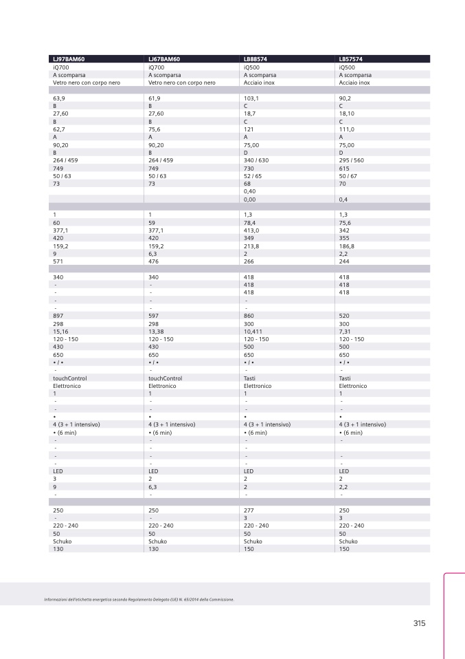 Informazioni dell’etichetta energetica secondo Regolamento Delegato (UE) N. 65/2014 della Commissione.