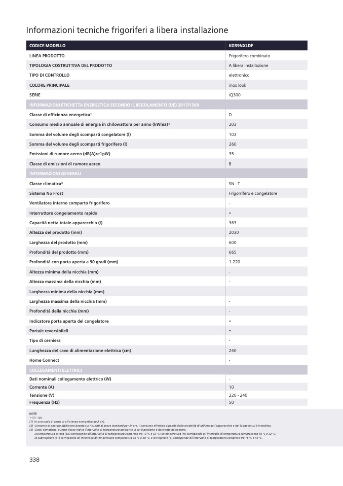 La temperatura estesa (SN) corrisponde all’intervallo di temperatura compreso tra 10 °C e 32 °C; la temperatura (N) corrisponde all’intervallo di temperatura compreso tra 16 °C e 32 °C;