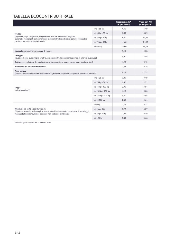 Valori in vigore a partire dal 1° febbraio 2023.