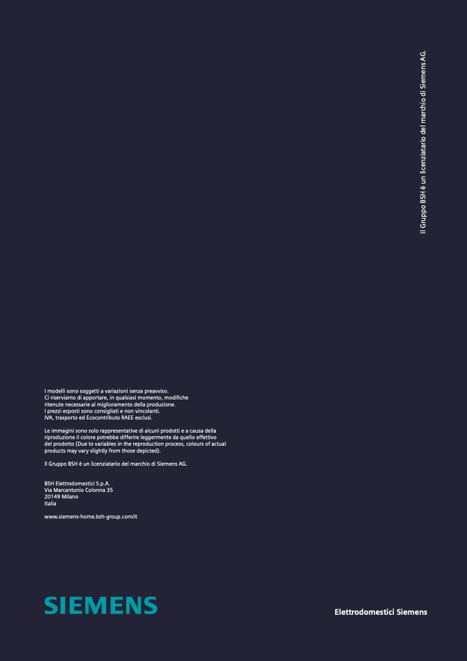 ll Gruppo BSH è un licenziatario del marchio di Siemens AG.