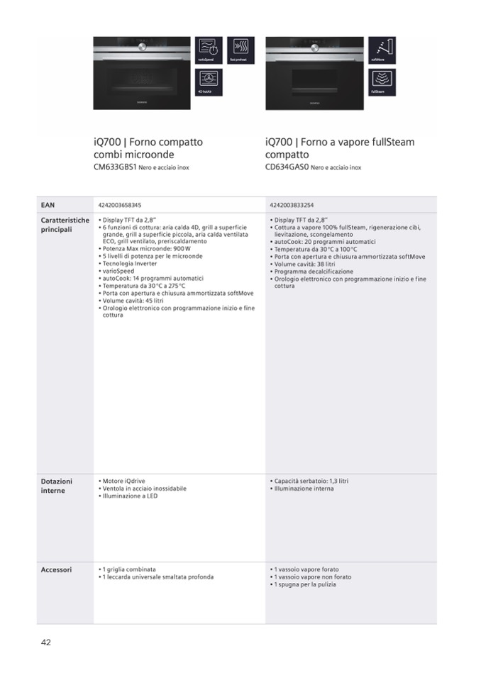 • Cottura a vapore 100% fullSteam, rigenerazione cibi,