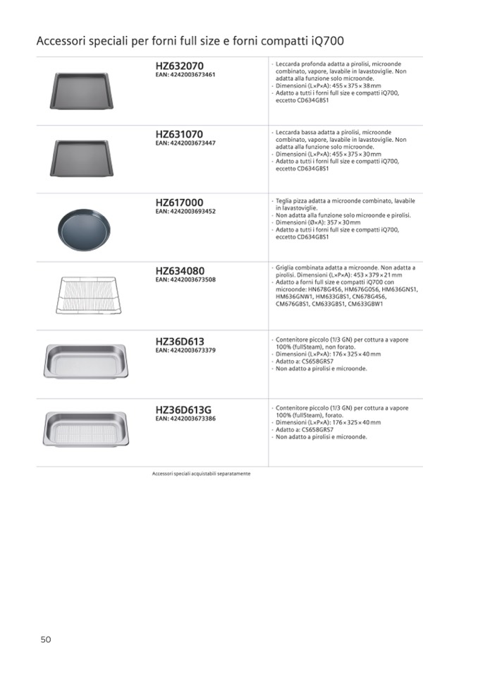· Adatto a tutti i forni full size e compatti iQ700,