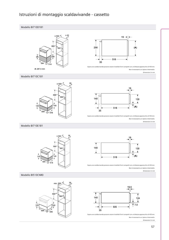 forni con altezza apparecchio 595 mm senza