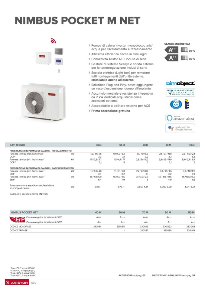 DATI TECNICI AGGIUNTIVI vedi pag. 54