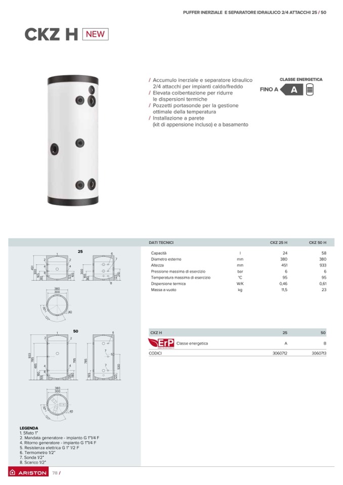 PUFFER INERZIALE E SEPARATORE IDRAULICO 2/4 ATTACCHI 25 / 50