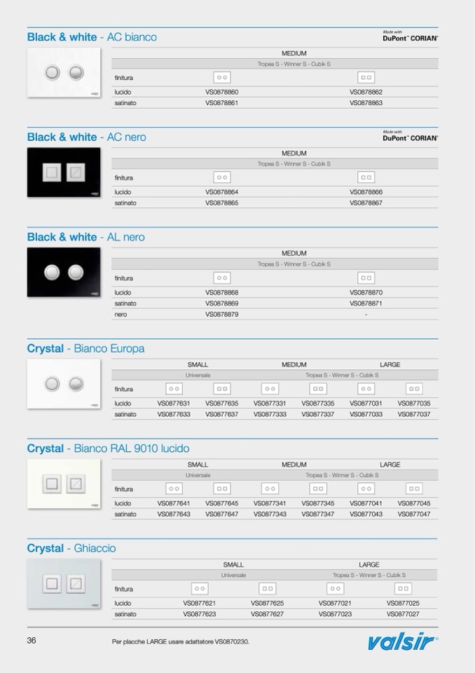Per placche LARGE usare adattatore VS0870230.