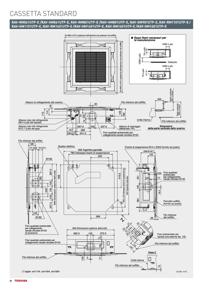 Da 860 a 910 Larghezza dell’apertura da praticare nel soffitto