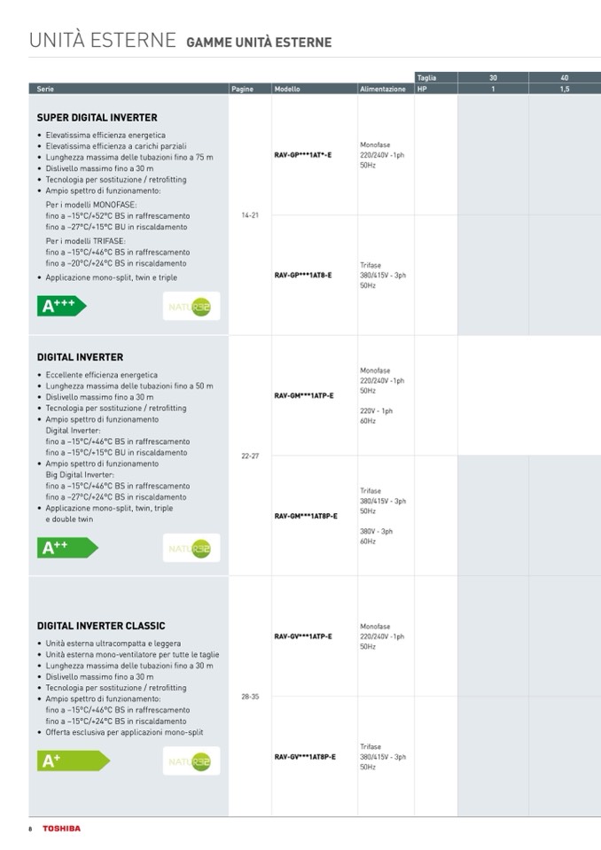 • Applicazione mono-split, twin, triple