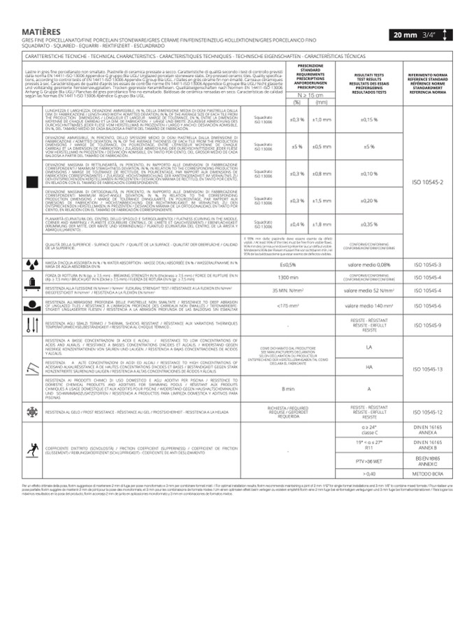 norma EN 14411-ISO 13006 Appendice G gruppo BIa UGL/ Unglazed porcelain stoneware slabs. Dry-pressed ceramic tiles. Quality speci