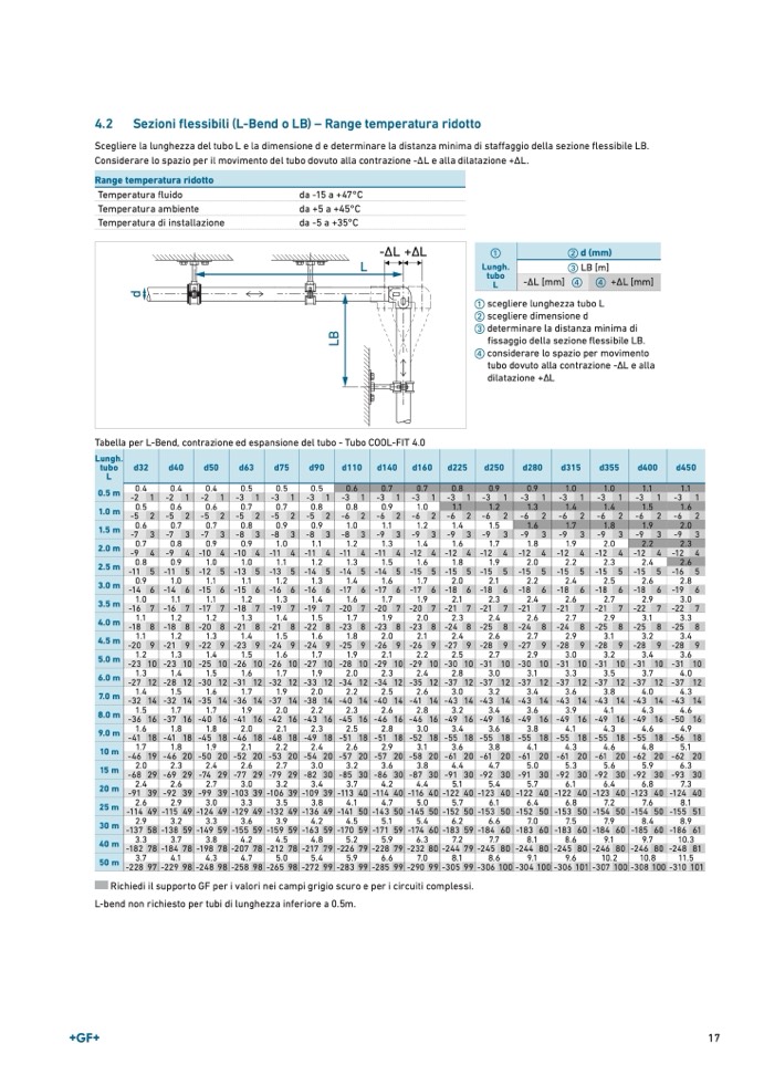Tabella per L-Bend, contrazione ed espansione del tubo - Tubo COOL-FIT 4.
