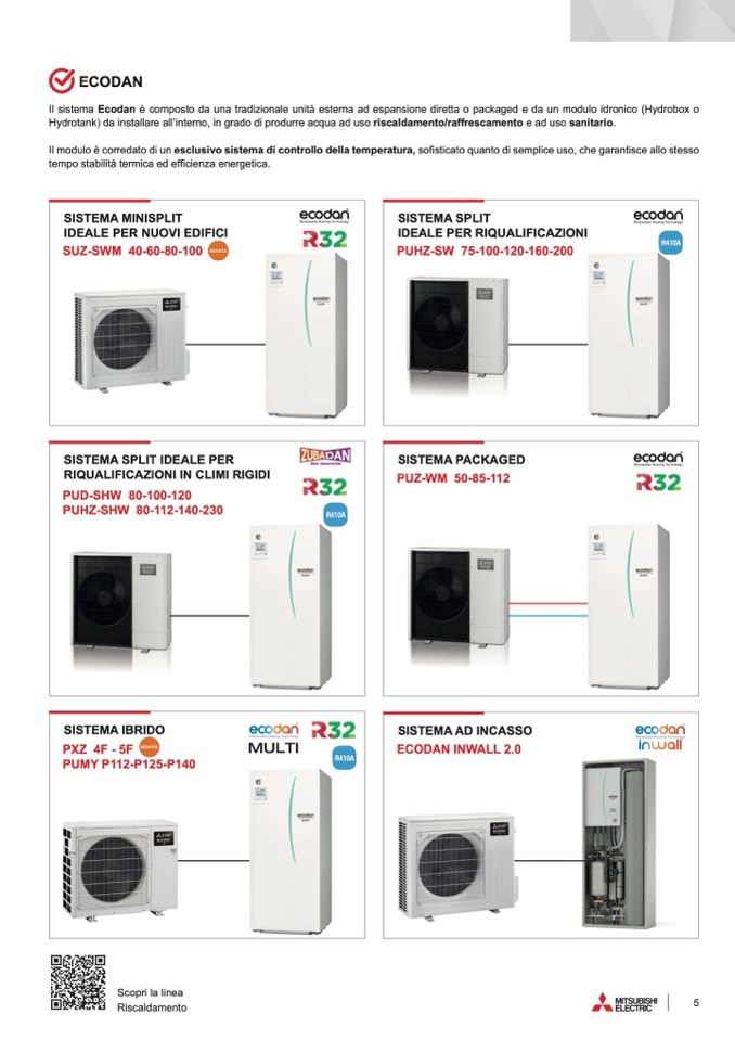 Il sistema Ecodan è composto da una tradizionale unità esterna ad espansione diretta o packaged e da un modulo idronico (Hydrobox o