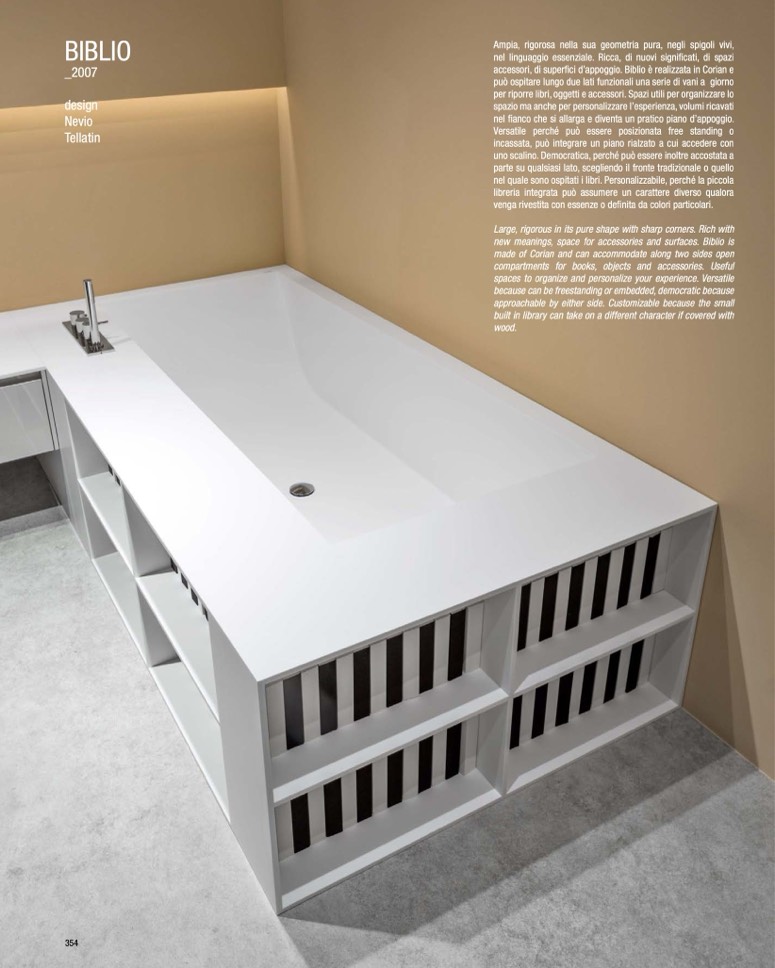 accessori, di superfici d’appoggio. Biblio è realizzata in Corian e