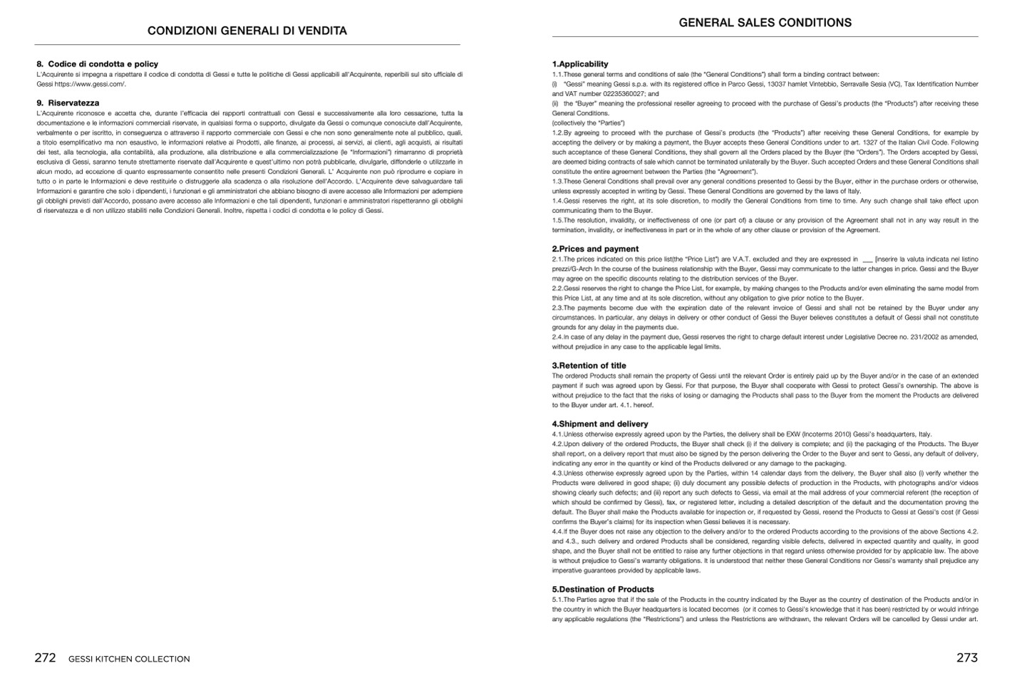 1.3.These General Conditions shall prevail over any general conditions presented to Gessi by the Buyer, either in the purchase orders or otherwise,