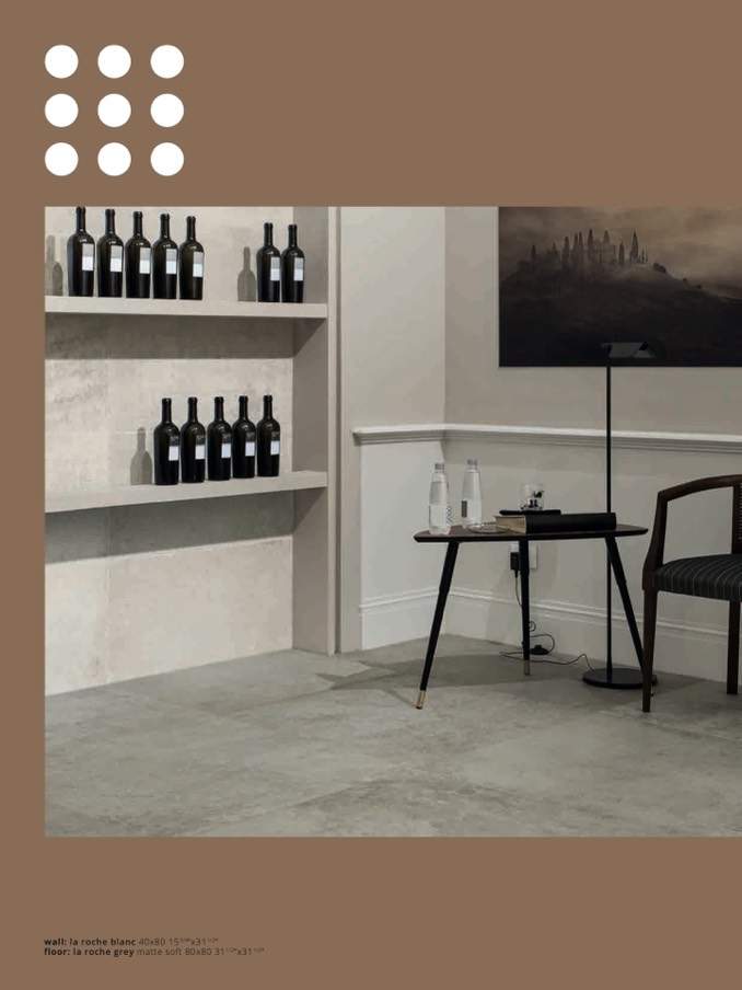 floor: la roche grey matte soft 80x80 311/2”x311/2”