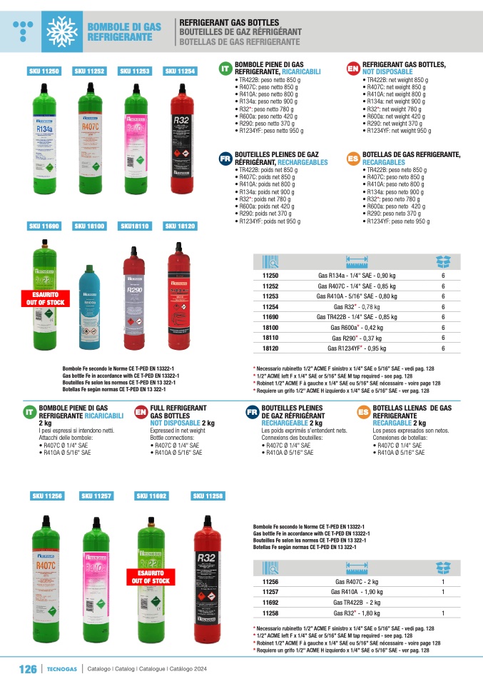 • R1234YF: peso netto 950