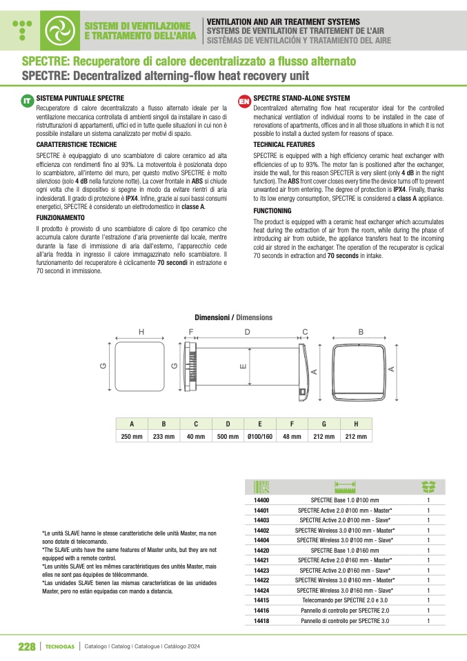 *Le unità SLAVE hanno le stesse caratteristiche delle unità Master, ma no