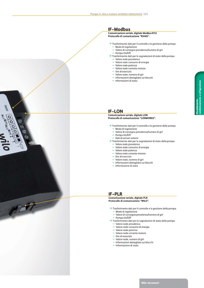 Trasferimento dati per le segnalazioni di stato della pompa: