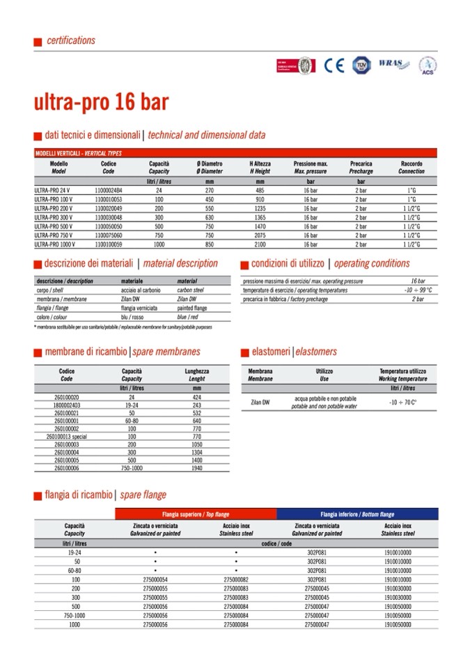 * membrana sostituibile per uso sanitario/potabile / replaceable membrane for sanitary/potable purposes