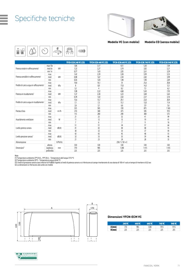 (1) Temperatura ambiente 27°C B.S., 19°C B.U. - Temperatura dell'acqua 7/12 °C