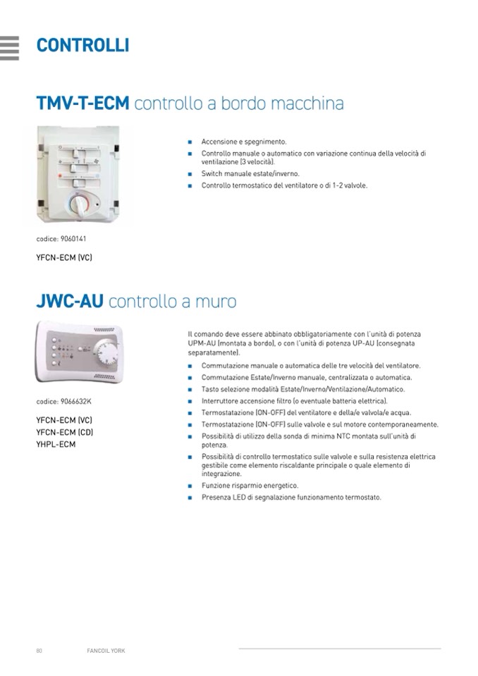 Controllo termostatico del ventilatore o di 1-2 valvole.
