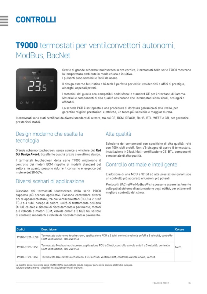di controllo modulanti e valvole di riscaldamento a pavimento.