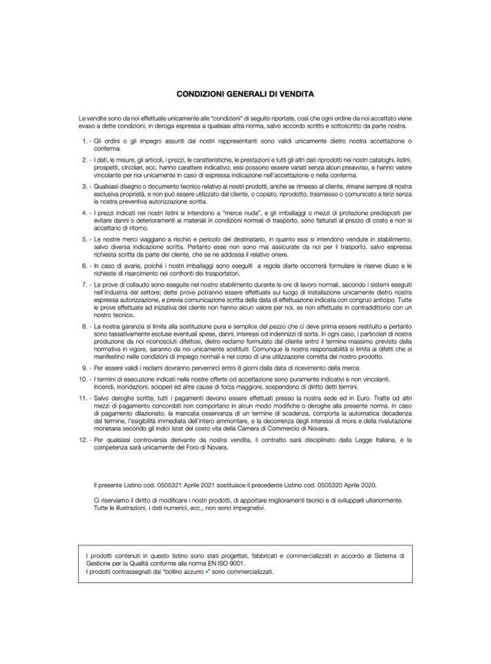 Il presente Listino cod. 0505321 Aprile 2021 sostituisce il precedente Listino cod. 0505320 Aprile 2020.
