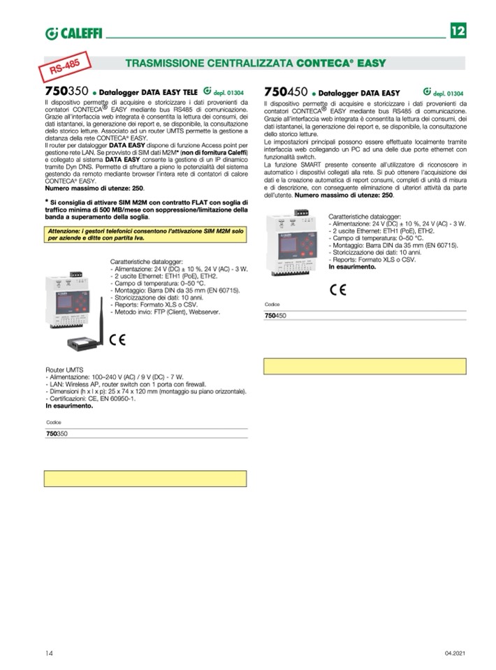 gestione rete LAN. Se provvisto di SIM dati M2M* (non di fornitura Caleffi)