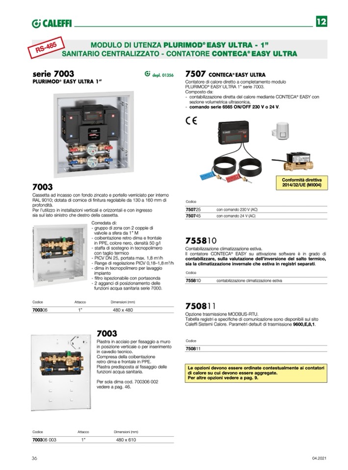 Caleffi Sistemi Calore. Parametri default di trasmissione 9600,E,8,1.