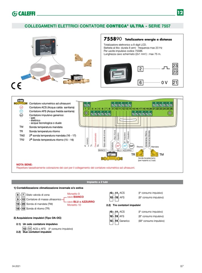 Rispettare tassativamente colorazione dei cavi per il collegamento del contatore volumetrico ad ultrasuoni.