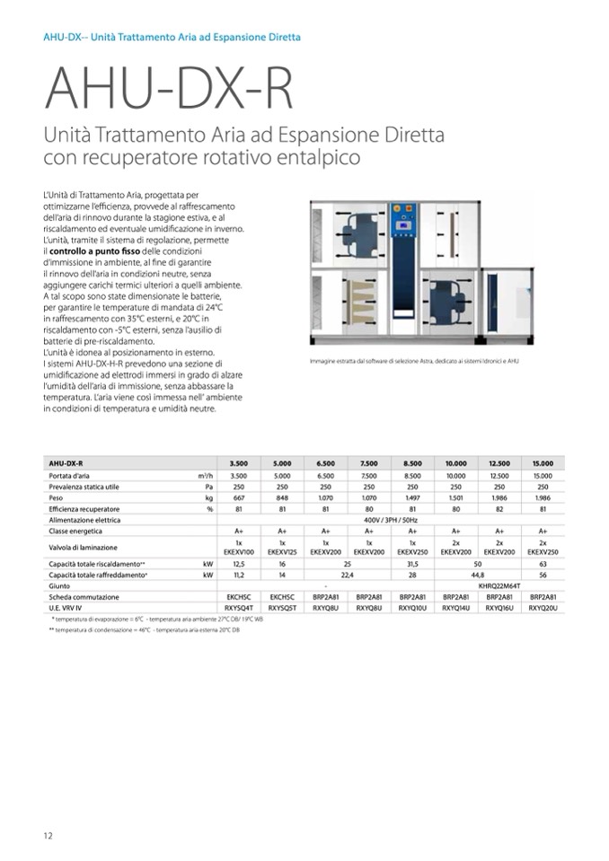 I sistemi AHU-DX-H-R prevedono una sezione di