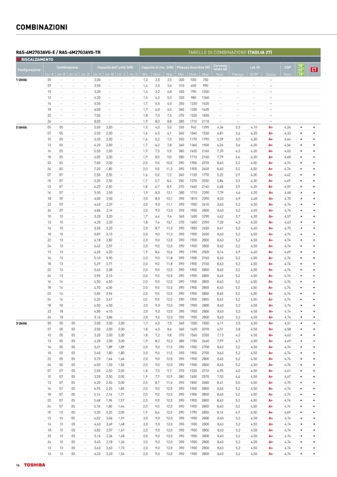 TABELLE DI COMBINAZIONE (TAGLIA 27)