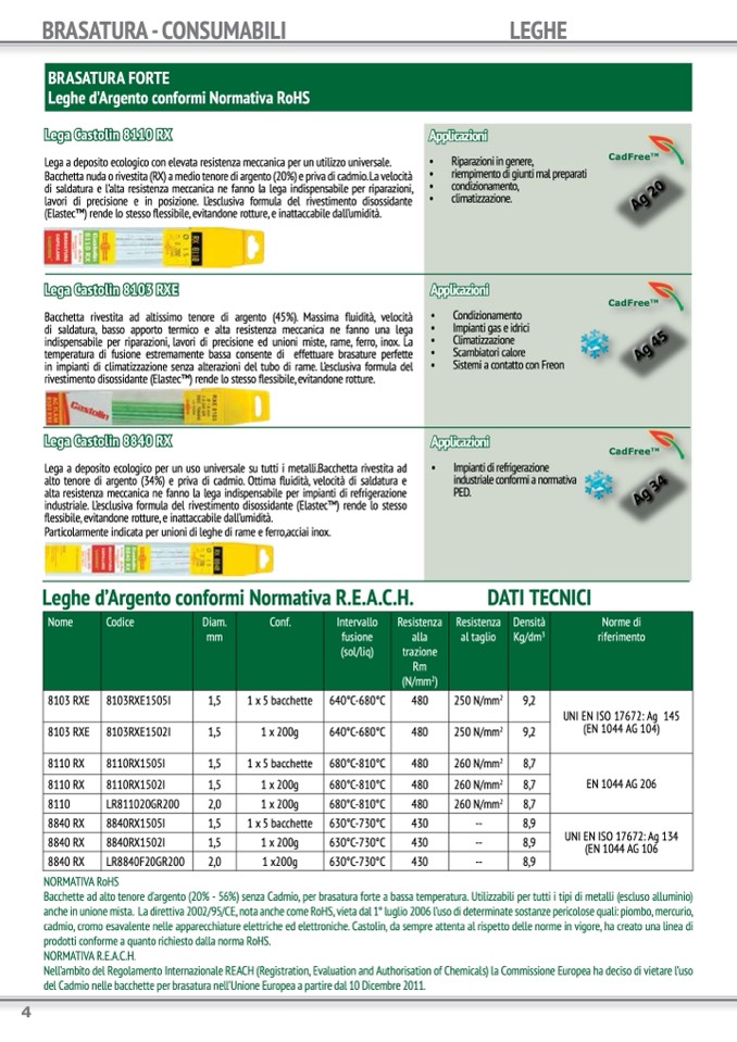 cadmio, cromo esavalente nelle apparecchiature elettriche ed elettroniche. Castolin, da sempre attenta al rispetto delle norme in vigore, ha creato una linea di