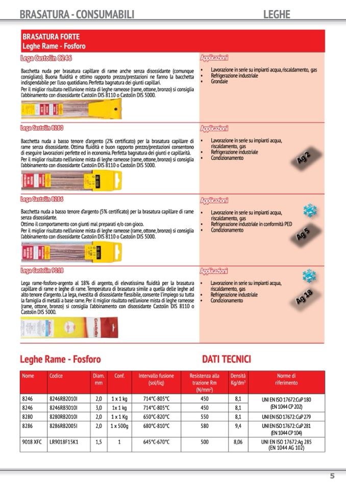 Lega rame-fosforo-argento al 18% di argento, di elevatissima fluidità per la brasatura