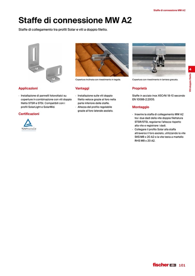 Staffe di collegamento tra profili Solar e viti a doppio filetto.
