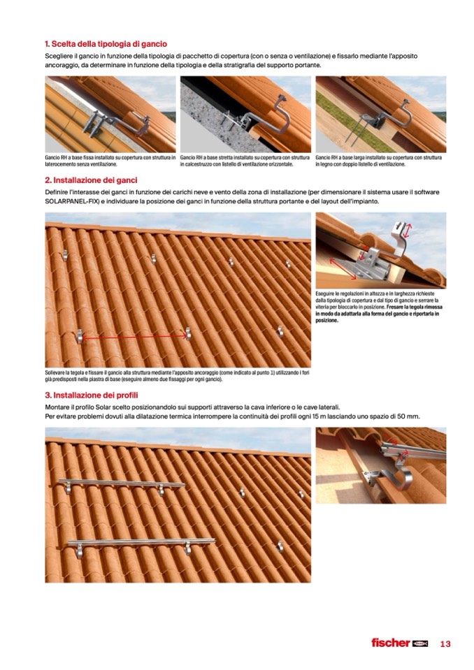 SOLARPANEL-FIX) e individuare la posizione dei ganci in funzione della struttura portante e del layout dell’impianto.