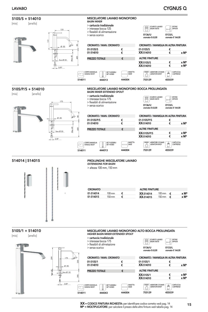 : per calcolare il prezzo delle altre finiture vedi tabella pag. 14
