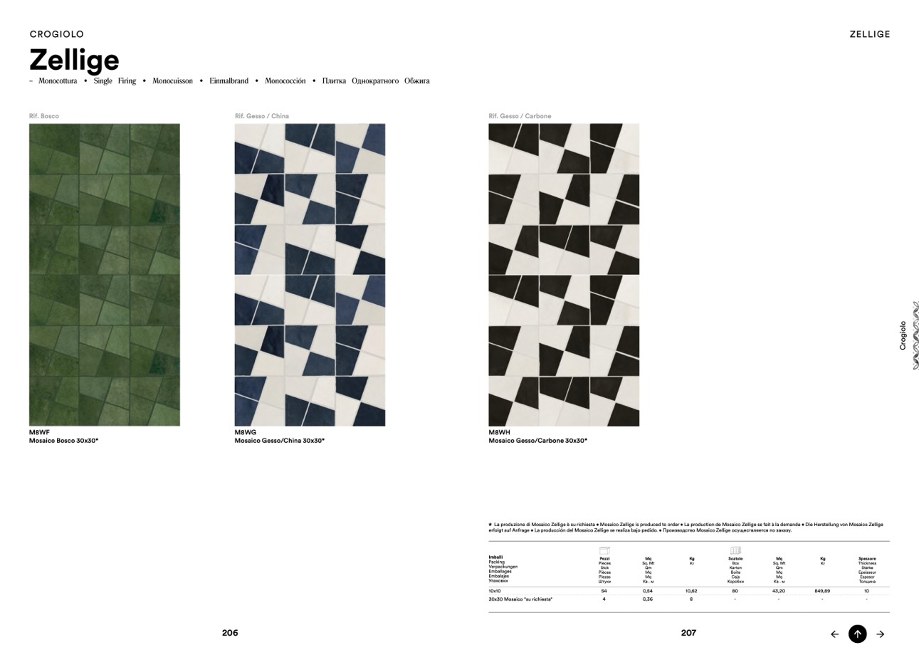 La produzione di Mosaico Zellige è su richiesta • Mosaico Zellige is produced to order • La production de Mosaico Zellige se fait à la demande • Die Herstellung von Mosaico Zellige