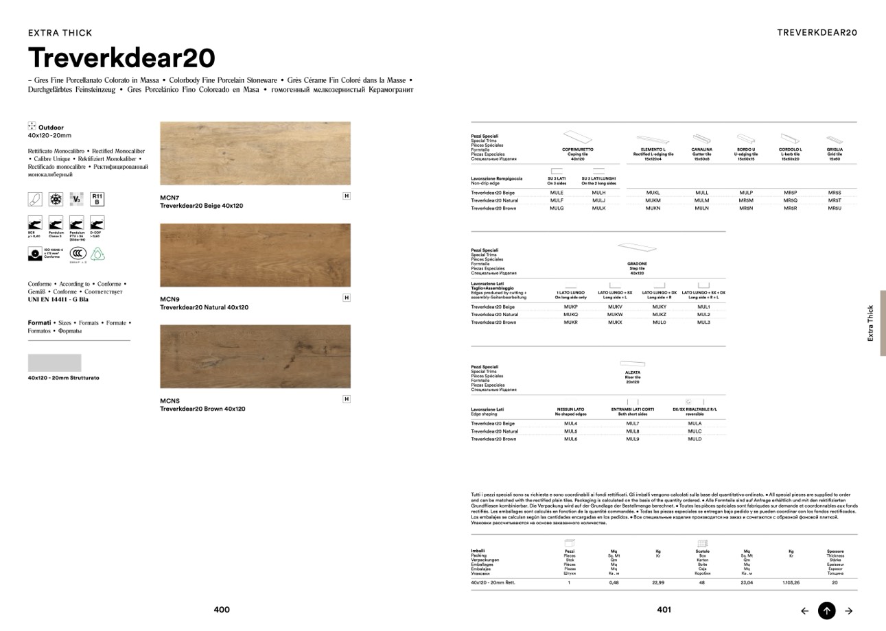 and can be matched with the rectified plain tiles. Packaging is calculated on the basis of the quantity ordered. • Alle Formteile sind auf Anfrage erhältlich und mit den rektifizierten