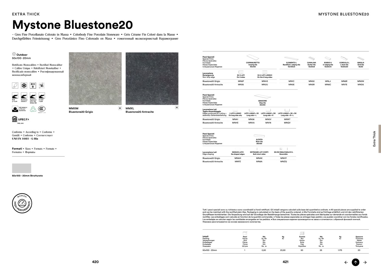 Tutti i pezzi speciali sono su richiesta e sono coordinabili ai fondi rettificati. Gli imballi vengono calcolati sulla base del quantitativo ordinato. • All special pieces are supplied to order