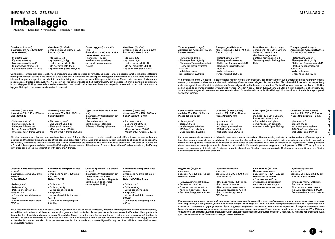We strongly recommend that an A-frame is used when Marazzi slabs are transported via container. If you order from 1 to 5 slabs of 120x278 cm