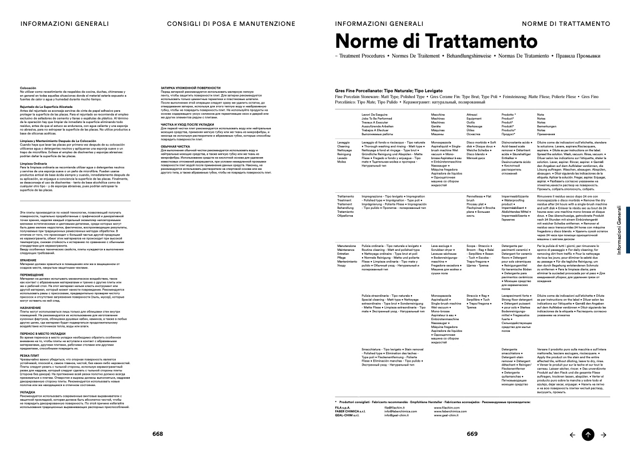 Fine Porcelain Stoneware: Matt Type; Polished Type • Gres Cerame Fin: Type Brut; Type Poli • Feinsteinzeug: Matte Fliese; Polierte Fliese • Gres Fino