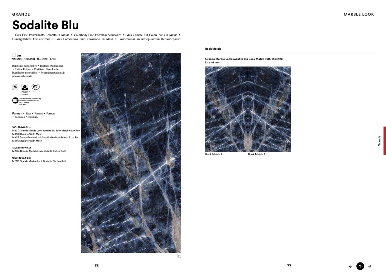 Grande Marble Look Sodalite Blu Book Match Rett. 160x320