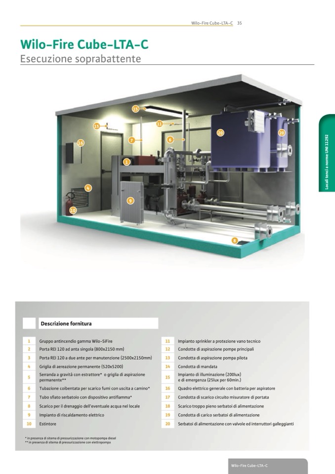 * in presenza di sitema di pressurizzazione con motopompa diesel