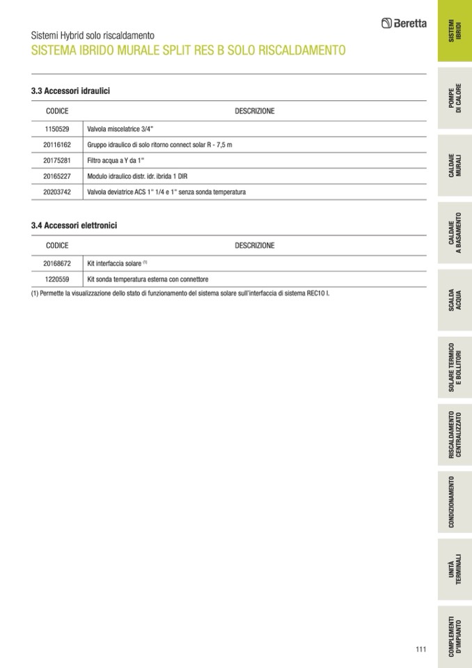 (1) Permette la visualizzazione dello stato di funzionamento del sistema solare sull’interfaccia di sistema REC10 I.