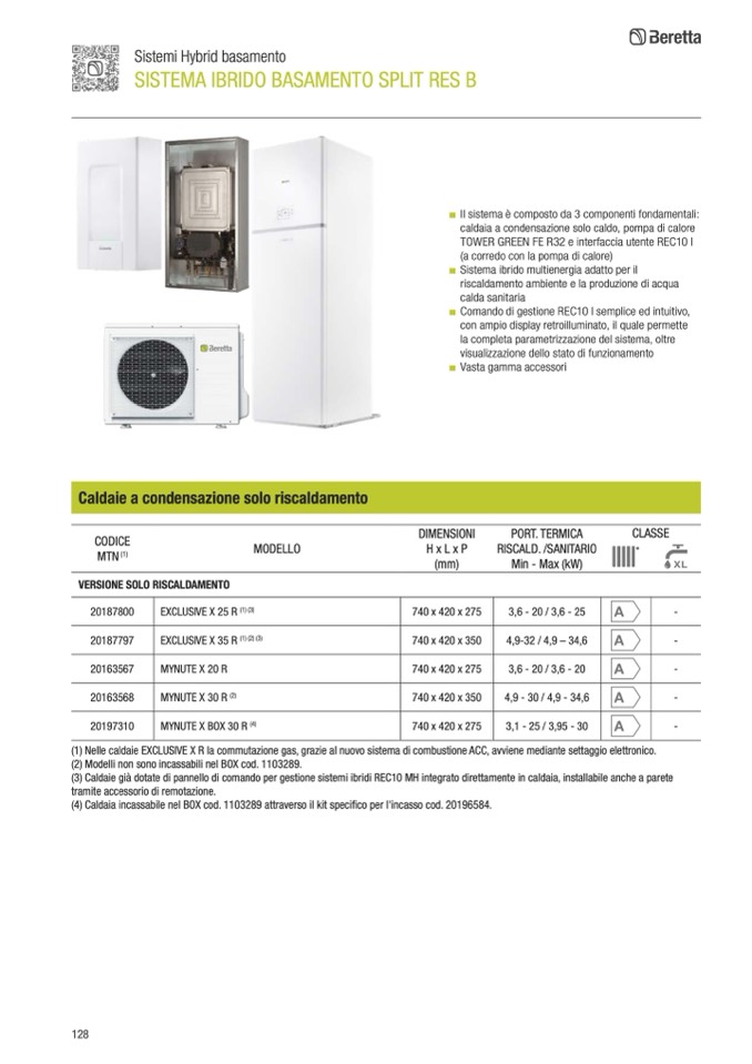 (1) Nelle caldaie EXCLUSIVE X R la commutazione gas, grazie al nuovo sistema di combustione ACC, avviene mediante settaggio elettronico.