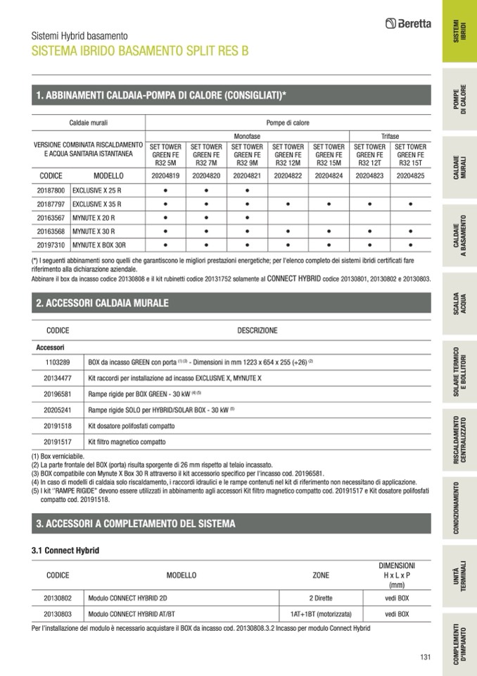 Abbinare il box da incasso codice 20130808 e il kit rubinetti codice 20131752 solamente al CONNECT HYBRID codice 20130801, 20130802 e 20130803.