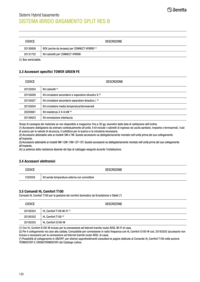 (2) Per il collegamento via cavo alla caldaia. Compatibile per connessione in radio frequenza con Hi, Comfort G100-W cod. 20193355 (accessorio non