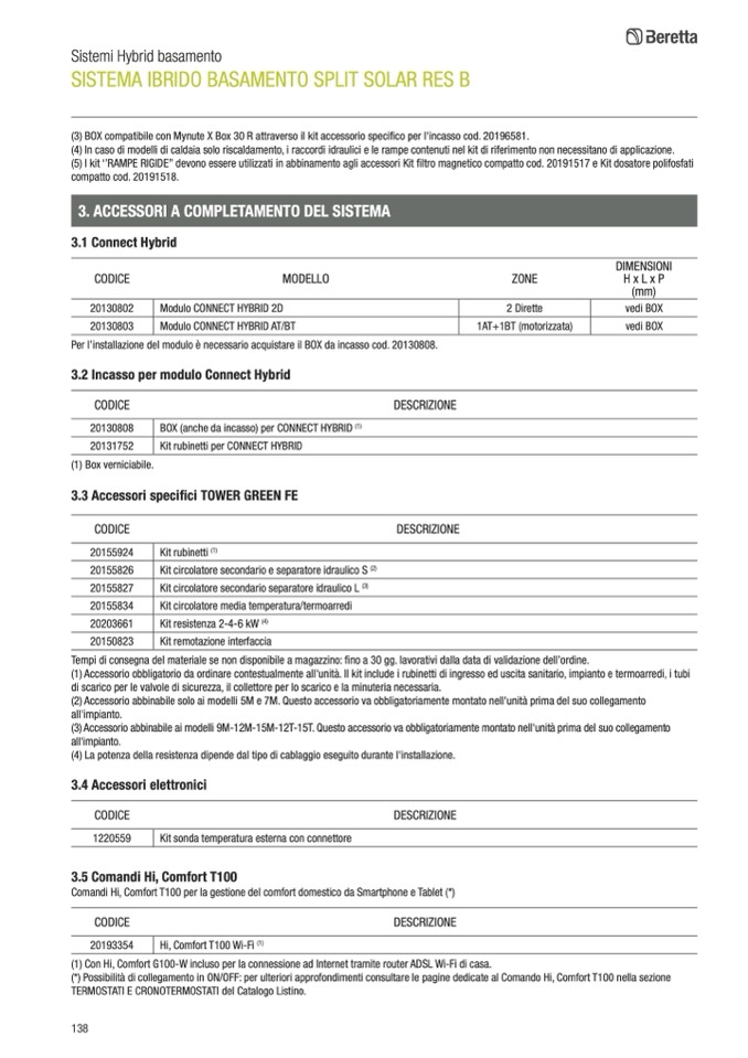 (1) Accessorio obbligatorio da ordinare contestualmente all'unità. Il kit include i rubinetti di ingresso ed uscita sanitario, impianto e termoarredi, i tubi