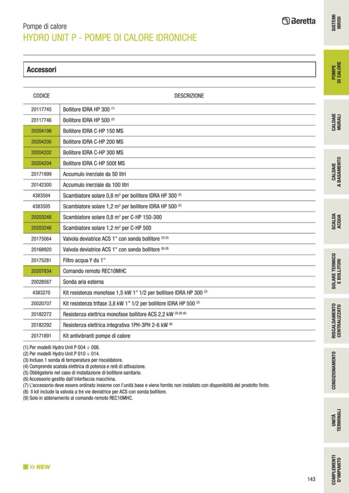 (5) Obbligatorio nel caso di installazione di bollitore sanitario.
